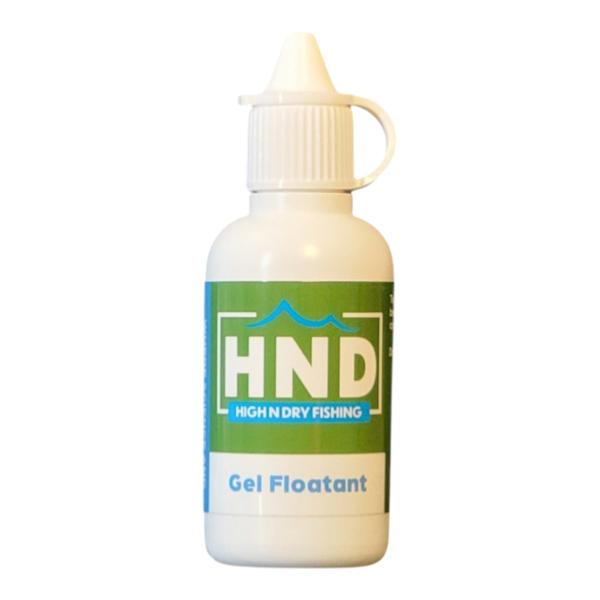 Le gel flottant « High N Dry » est un produit hydrofuge disposant d'un haut pouvoir de flottaison pouvant être utilisé sur tous les types de mouche sèche en poils de lièvre(oreille de lièvre), en poils de chevreuil, en plumes de coq, etc... Il est tout particulièrement recommandé pour une utilisation sur les mouches artificielles en plumes de cul de canard (CDC).