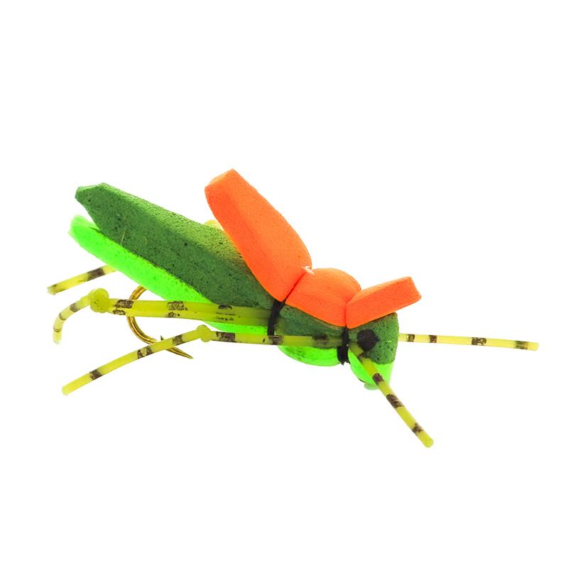 Un modèle pour les pêches estivales ou en réservoirs . Imitation de sauterelle , robuste , bien visible de par son indicateur orange en foam .